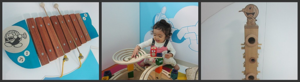 良質な木のおもちゃたちは全部藤子仕様の特別版!ドラえもんにも乗れるし、パオパオ(宇宙開拓史に出てくるぞう)にも乗れます。小学生は入れない、本当に小さい子向けのスペースです。