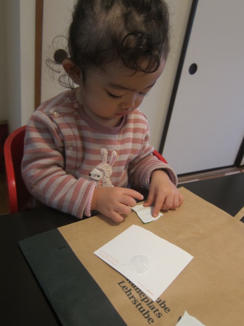 ④飾りのシールを貼る。これは優花が全部できました。一番楽しそうでした。