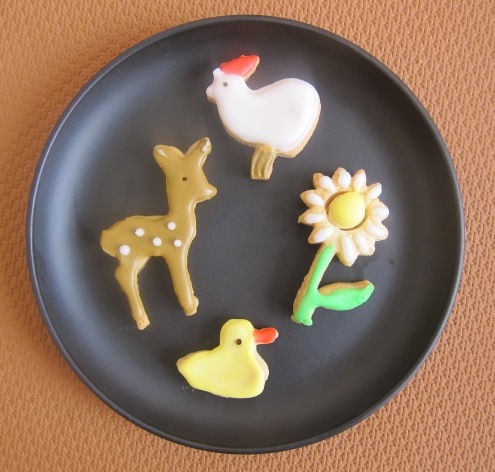 クッキーのアイシングです。「年初めにコレクションのクッキー型をつかう」と決めちゃっている(→☆)からです。今回はちょっと本気を出して、正しいアイシングのやり方で、固いので線をとってゆるいので中を埋めるやり方にしました。willtonのカラーも使ってみました。
