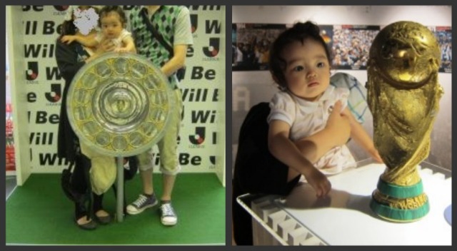 Jリーグ杯やワールドカップ、アジアカップのトロフィーもありますよー。もちろんレプリカだけどー。